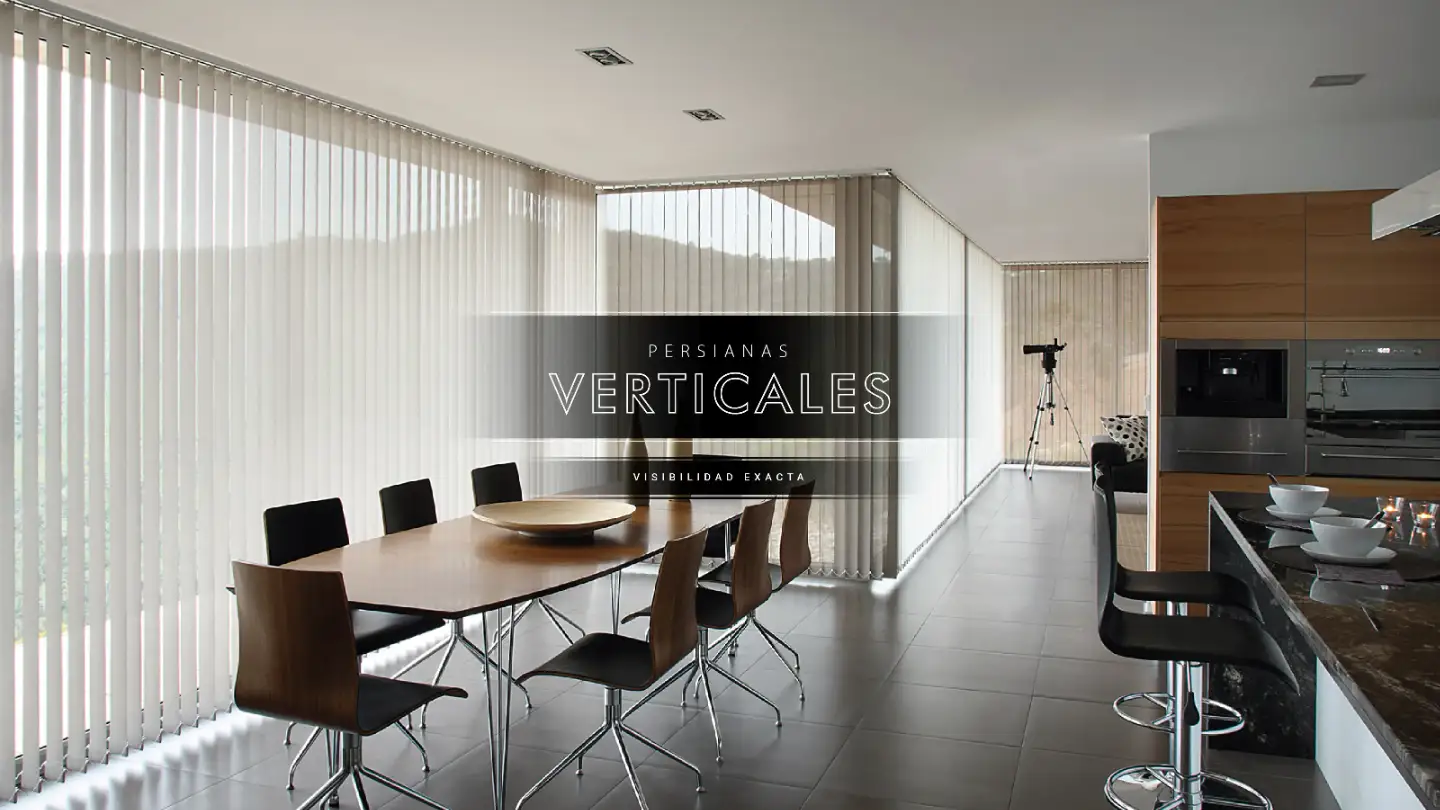 La persiana vertical transforma ambientes ya que viste la ventana con un toque vanguardista. Se recoge en un mínimo espacio y se extiende cubriendo y regulando la entrada de luz de acuerdo con cada necesidad.